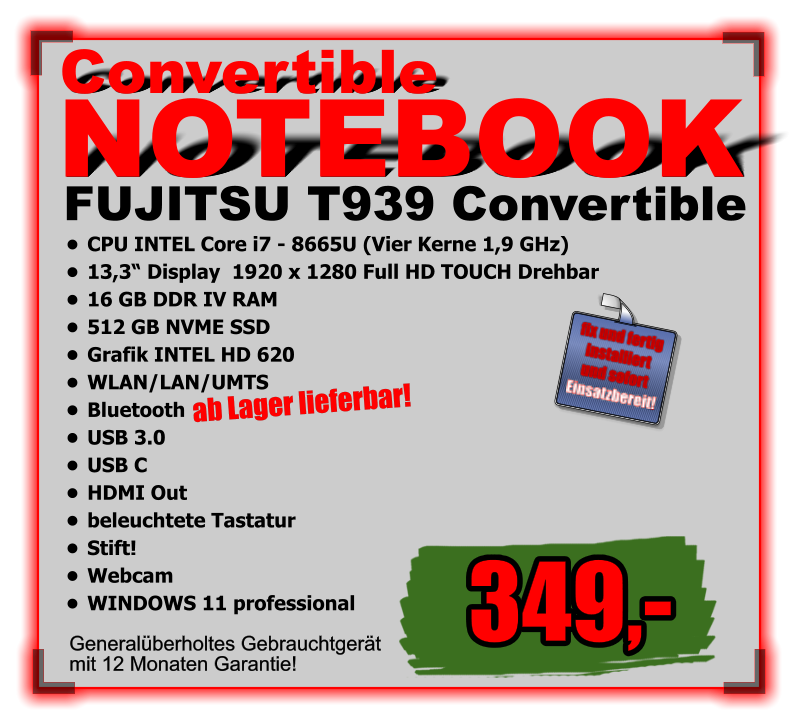 13,3“ Display 1920 x 1280 Full HD TOUCH Drehbar
